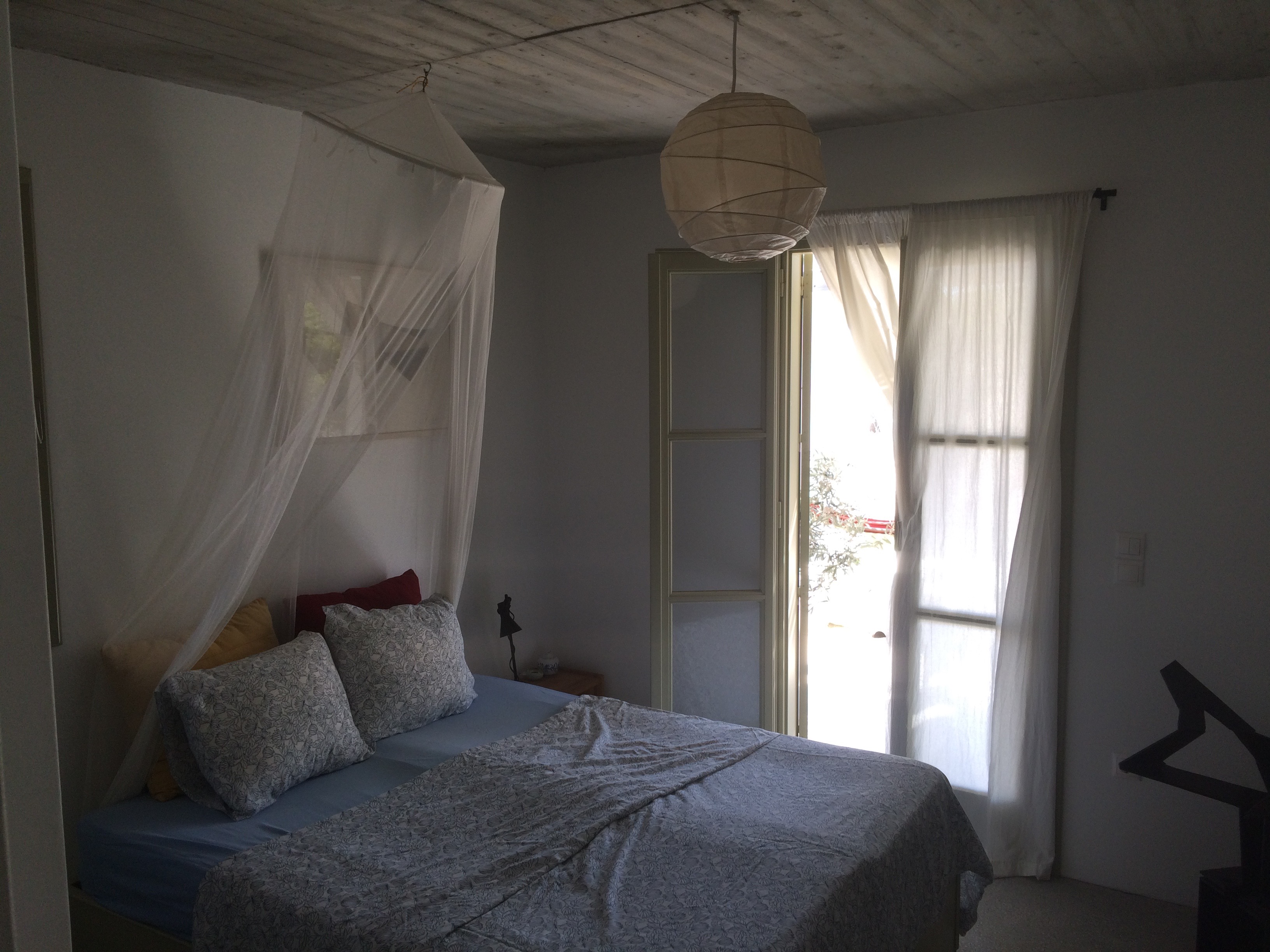 Située sur la côte nord-est de l’île, cette maison offre un lieu protégé quand il y a du vent. Elle a une température idéale en été grâce à ses murs épais ainsi que ses portes et fenêtres conçues pour laisser passer l’air. Plusieurs restaurants et un supermarché sont à proximité, et les bars se situent sur une autre plage à quelques minutes à pied. La ville principale de Skyros (appelée “Chora”) est accessible en voiture ou en bus. Vous y trouverez : musée archéologique et musée folklorique, chapelles byzantines, l’ancien château du roi Lycomidis et une sélection de tavernes traditionnelles, de bars branchés et de boutiques.
